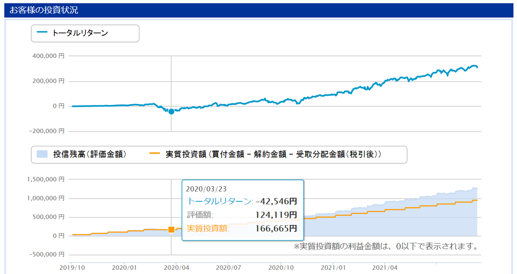 つみたてNISAを2019年10月からスタートし、翌年に早速の暴落を経験しました。。。